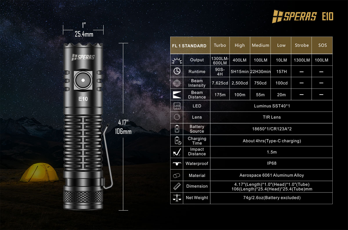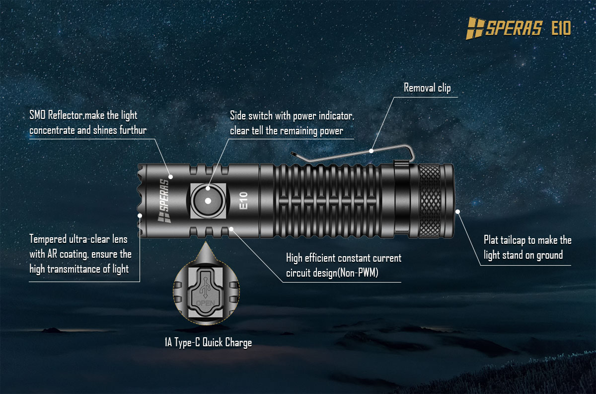 The Speras E10 is a multifunctional flashlight specifically designed for EDC, urban and outdoor use.