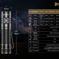 Its boasts a Turbo function with a max output of 1300 lumens and a 175m beam distance;