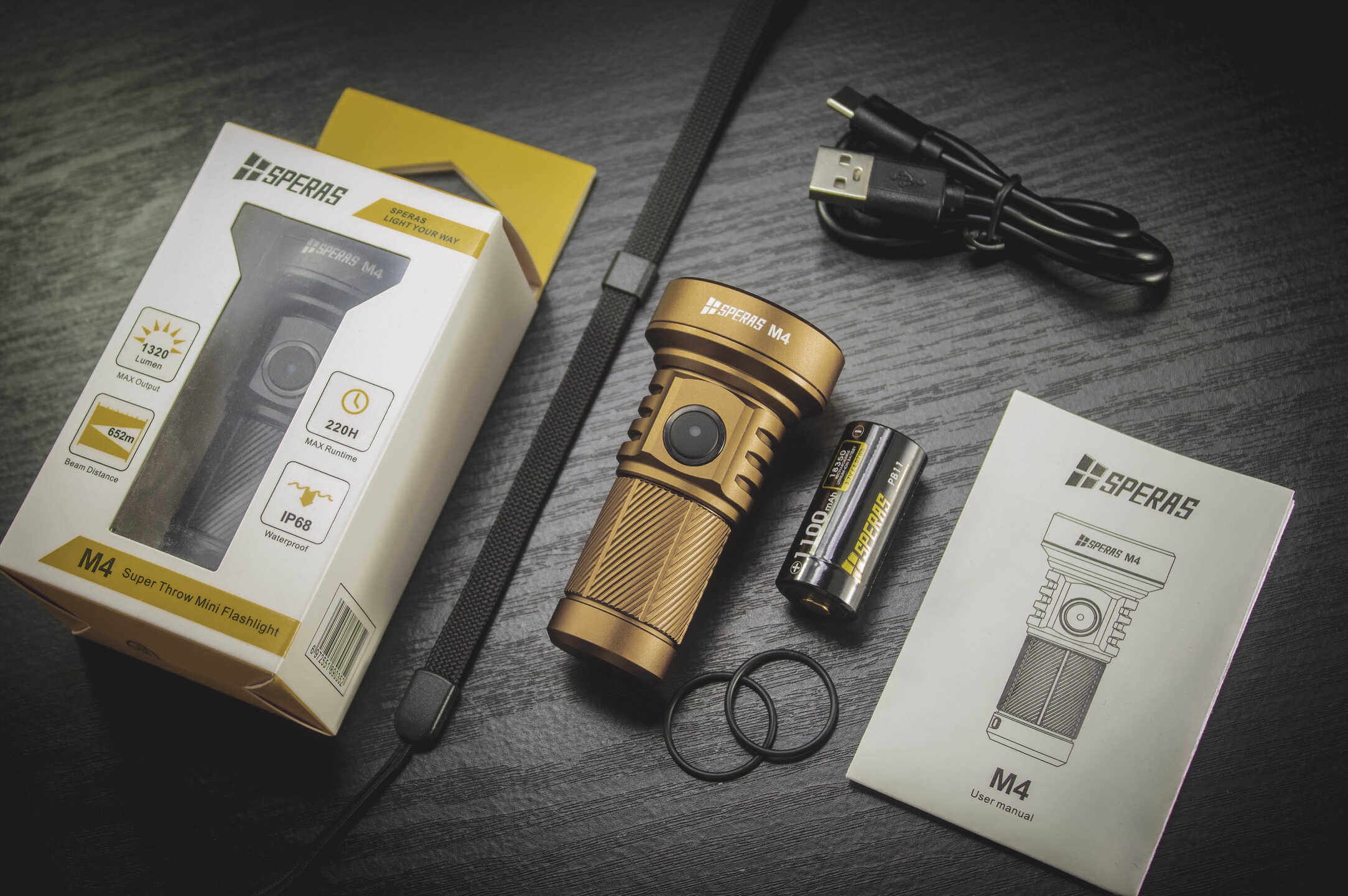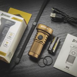 The Speras M4 is a high performance flashlight with a 1320 lumen output. Despite the size (8cm) it boasts an impressive beam distance of 652m. It packs 7 different light modes and spectacular runtimes. It is a perfect thrower for long distance lighting requirements.