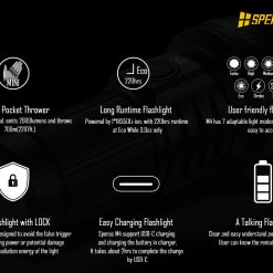 The new Speras M4 V2 is a high performance flashlight with a 2000 lumen output. Despite the size (8cm) it boasts an impressive beam distance of 700m. It packs 7 different light modes and spectacular runtimes. It is a perfect thrower for long distance lighting requirements.